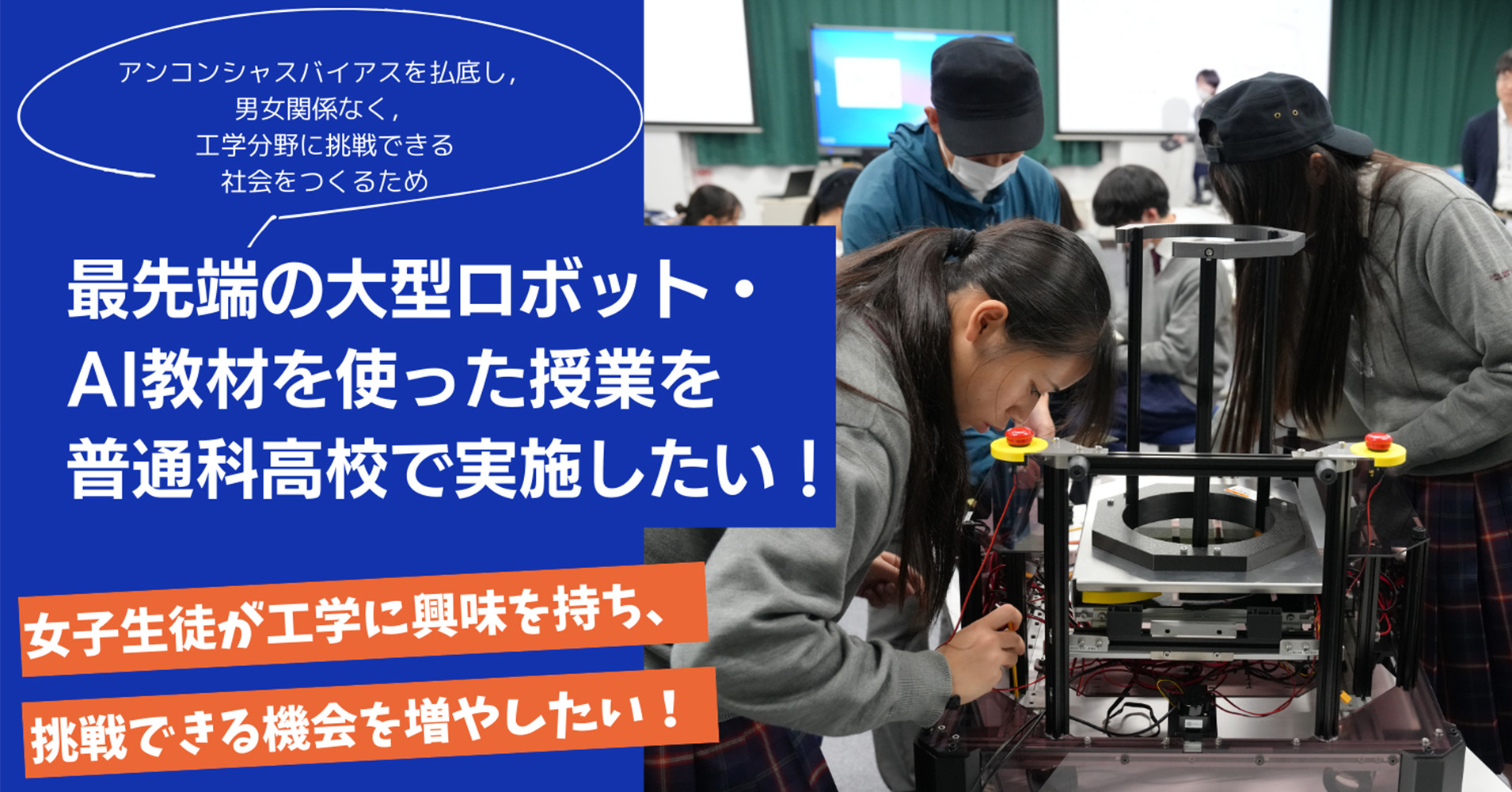 女性の工学系への進学率は全体の2割にも満たず,とても少ない状況です.その背景には,進路選択の前段階で工学に興味を持つきっかけが得られていないことがあるのではないかと感じています.ロボットやAIが私たちの生活の一部になりつつある今,学べる機会が必要と思い,今回クラウドファンディングを企画しました.1台でも多くのロボット・AI教材を高校生の手に届けるために,みなさんの温かいご支援をどうぞよろしくお願いいたします.